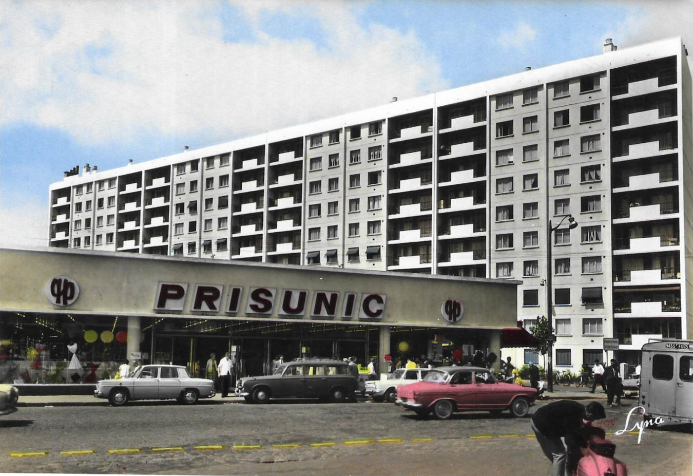 Les seuls indices permettant de situer cette carte postale à cet emplacement sont la silhouette des grands bâtiments et le nom du garage. Le reste du paysage a été transformé et continue de l’être, notamment avec la destruction d’un concessionnaire en 2023.