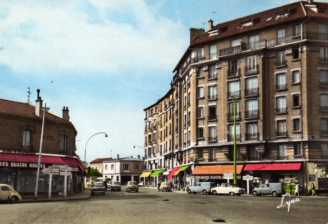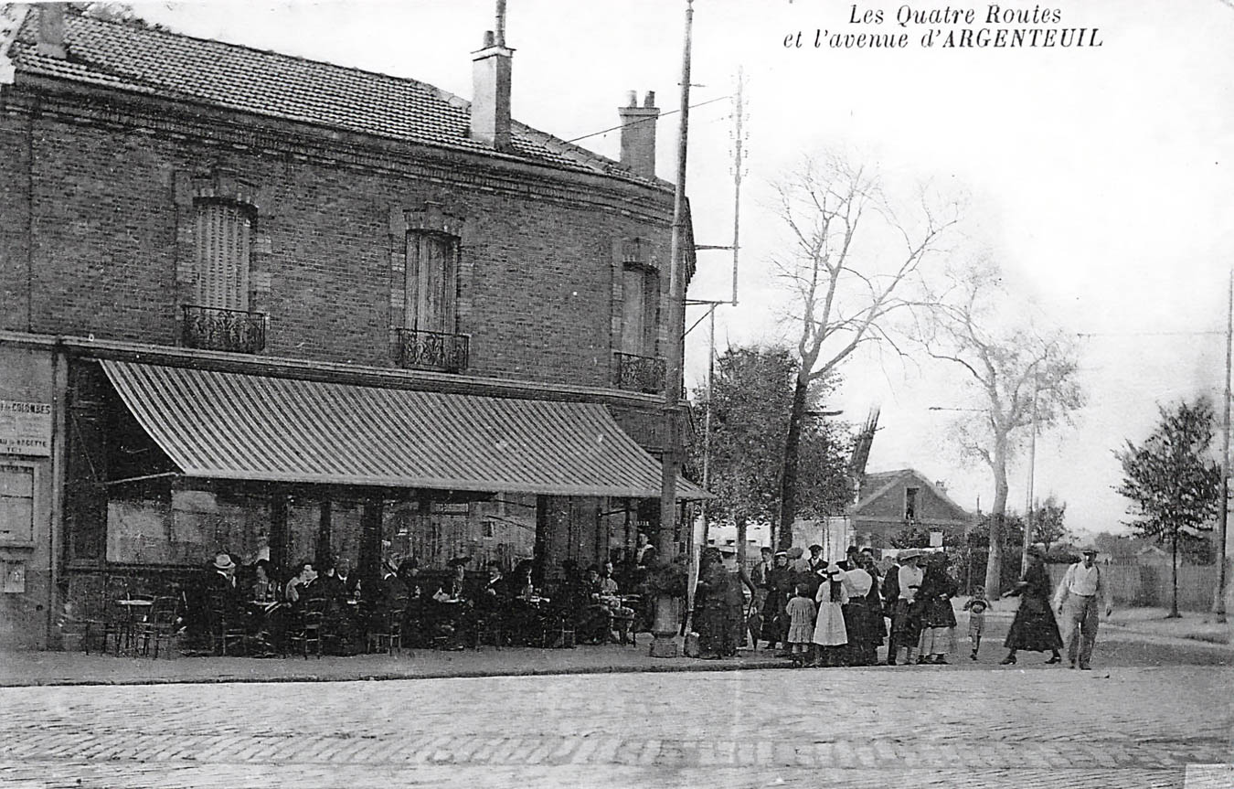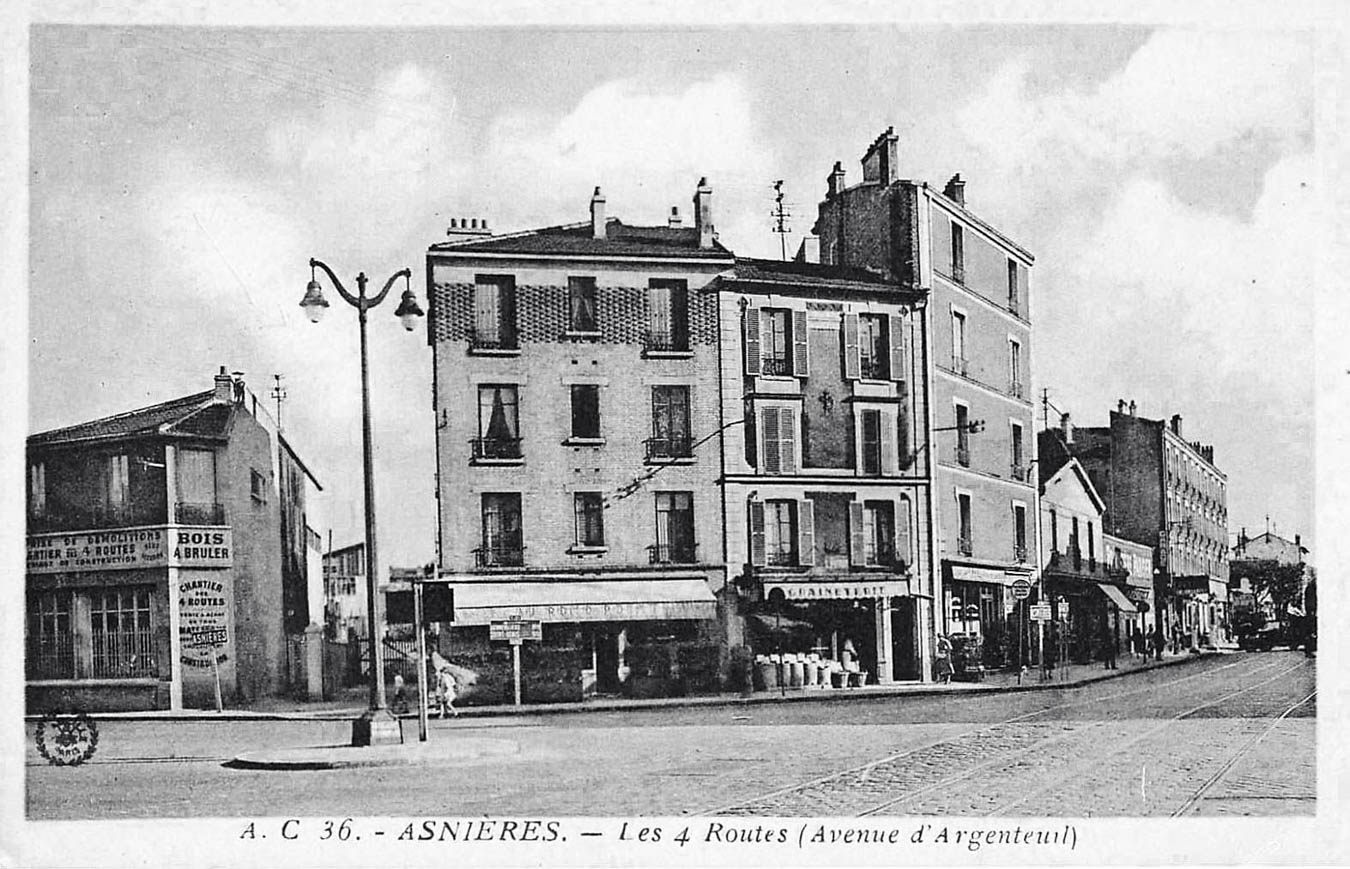 L'hôtel-bar des Quatre-Routes a été démolli en 2025. Il se trouvait à Colombes. L'immeuble, de l'autre côté de la rue à droite est à Asnières-sur-Seine.