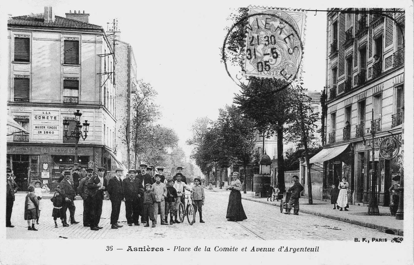 Le bâtiment de l’ancienne épicerie existe toujours : vous pouvez le retrouver en regardant le restaurant Leyrade sur Google Street View (176 Av. d'Argenteuil, 92600 Asnières-sur-Seine). Les fenêtres qui donnaient autrefois sur la place sont aujourd’hui masquées par les constructions réalisés probablement vers 1910.