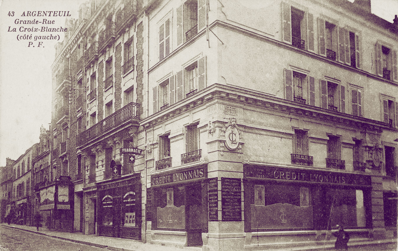 Le Crédit Lyonnais s'est installé au coin de la rue Laugier vers 1915. Aux alentours de 1945, les mêmes locaux sont occupés par un fournisseur de charbon Marcel Lefort. La pharmacie a peu changé durant toutes ces années.