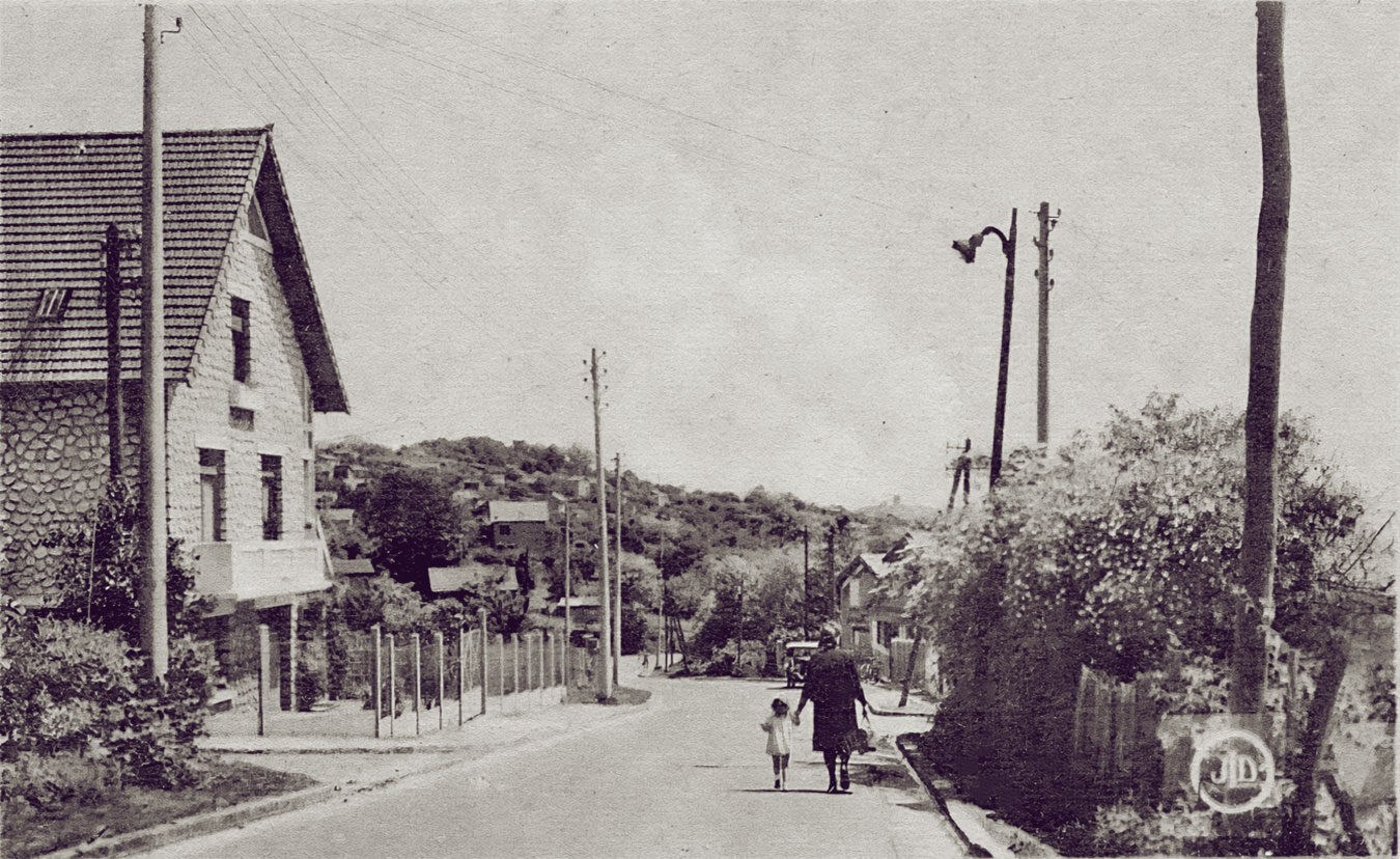 Nous continuons sur la rue Defresne-Bast (ex-rue de Sannois). Au loin, c'est la cheminée de l'usine Taillandier.