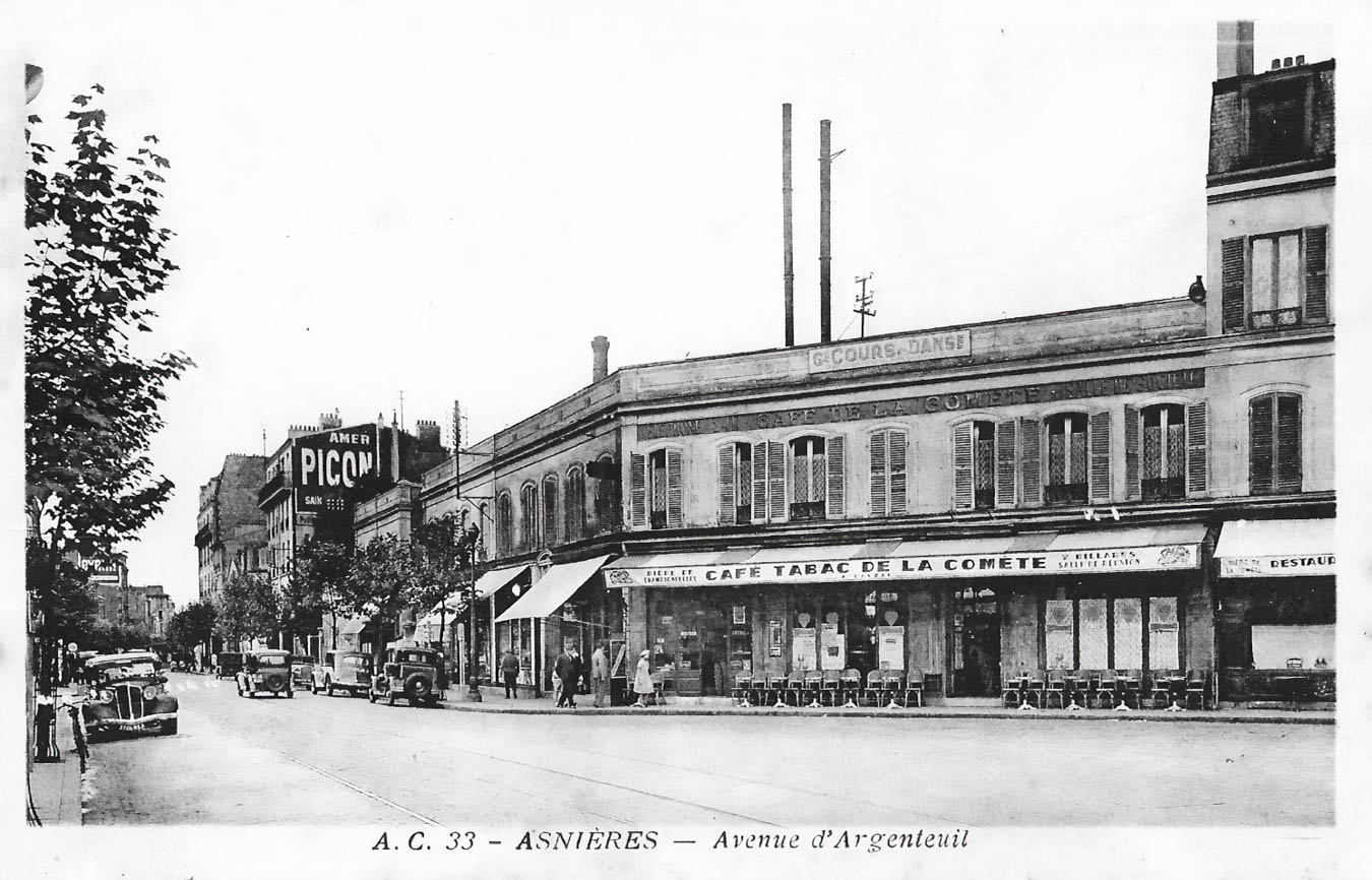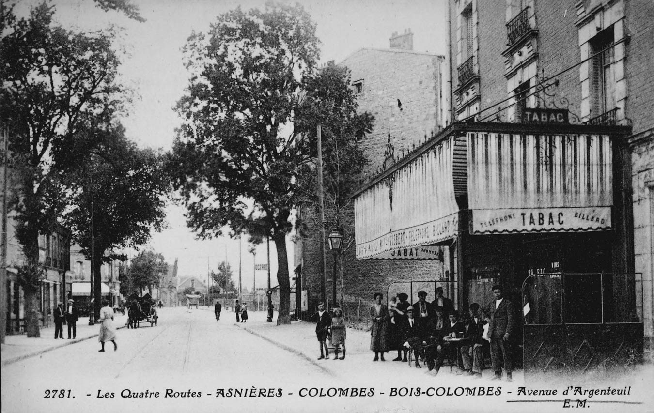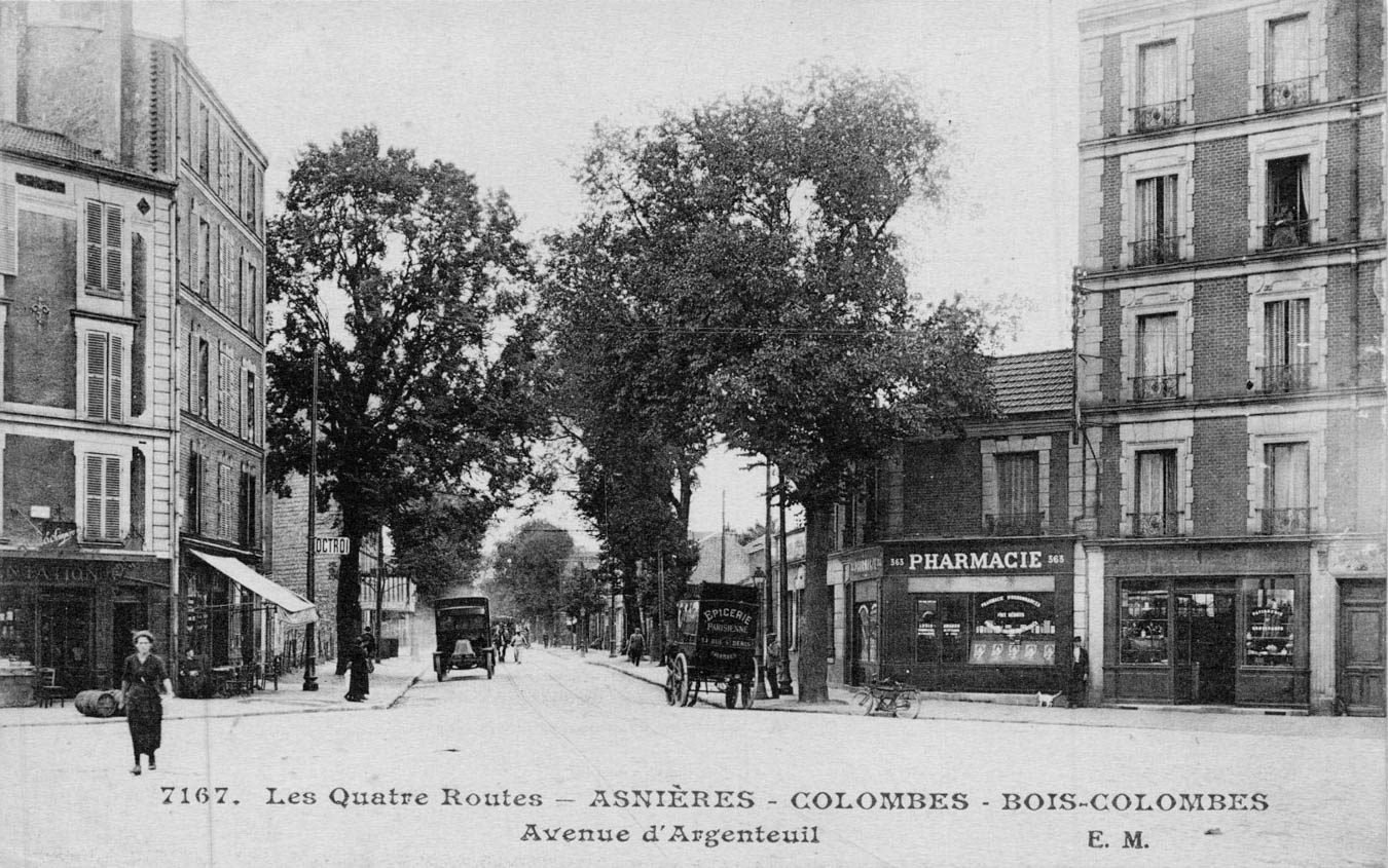 L'hôtel-bar des Quatre-Routes a été démolli en 2025. Il se trouvait à Colombes. L'immeuble, de l'autre côté de la rue à droite est à Asnières-sur-Seine.